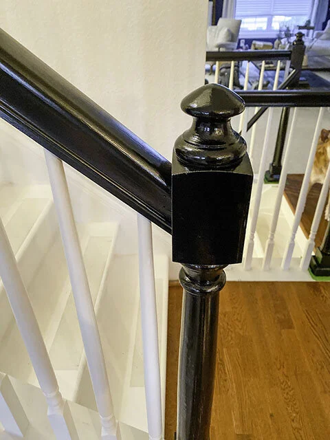 For the best long-lasting coverage and color quality water-based paints should be used when painting stairs. Ive always loved the look of the black on black stairs and Im so happy with how they turned out. Once the surface is dry and sound use a medium-sized paint brush to prime the railing use All Surface Enamel Oil Primer or All Surface Enamel Latex Primer VOC restricted States.